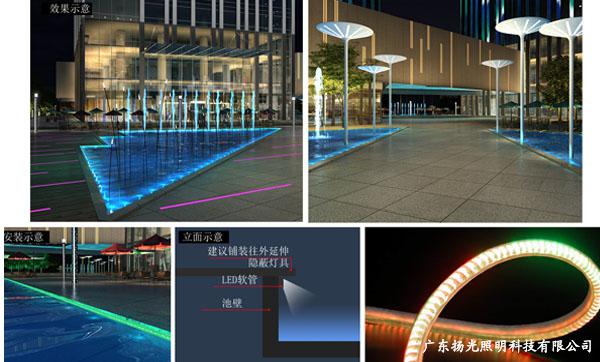 視線分為上中下三個部位,企業LOGO提高樓宇識別度,使之具有穿透力。建筑立面是燈光的動態演繹部分,塑造具有吸引力的燈光,建筑結構的表現。三部分是營造群樓活躍的商業氣氛,環境燈光的烘托。