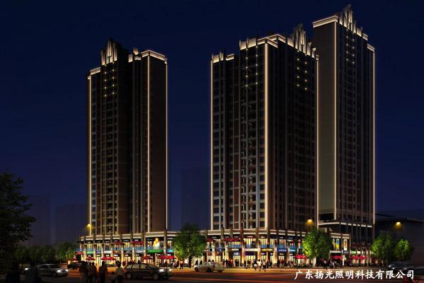 華生中心建筑主要是由西北側(cè)信安大道商務(wù)綜合樓,東南側(cè)住宅樓組成的樓宇,其照明特點(diǎn)也注重建筑的功能關(guān)系,層次關(guān)第,把握好照明亮度級(jí)別及控制。根據(jù)建筑功能與結(jié)構(gòu)的不同,主要分為四個(gè)亮度級(jí)別。