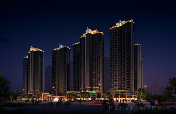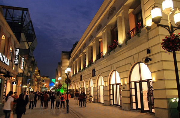 沿街建筑展示立面,營造清晰明亮、華麗尊貴、溫馨浪漫的夜景燈光氛圍。照明偏向?qū)ν馍虡I(yè)氣氛的表達(dá);燈光對外具有吸引性。