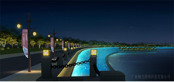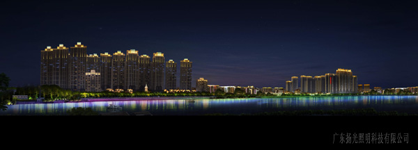 不同的視角,展現不同的燈光氛圍。高低錯落的建筑群,通過燈光的點綴在夜晚清晰可見。搭配沿岸樹木燈光的點綴,在不同時段及節日可以打開星空光束燈。使整體效果更加協調統一。