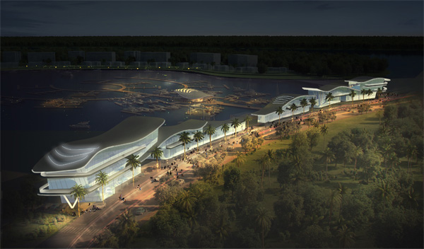 海花島游艇俱樂部水域面積達20萬平方米,泊位區域平均水深4米。規劃泊位280個,首期建設80個泊位,俱樂部會所位于游艇泊位水上核心區,是海上游艇會所。