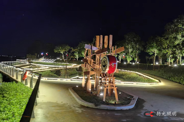 濱水休閑活動廣場設(shè)置的一些具有發(fā)光效果的燈具,增添一定的游玩觀賞性和趣味性,營造優(yōu)美,和諧的新鄉(xiāng)村環(huán)境。