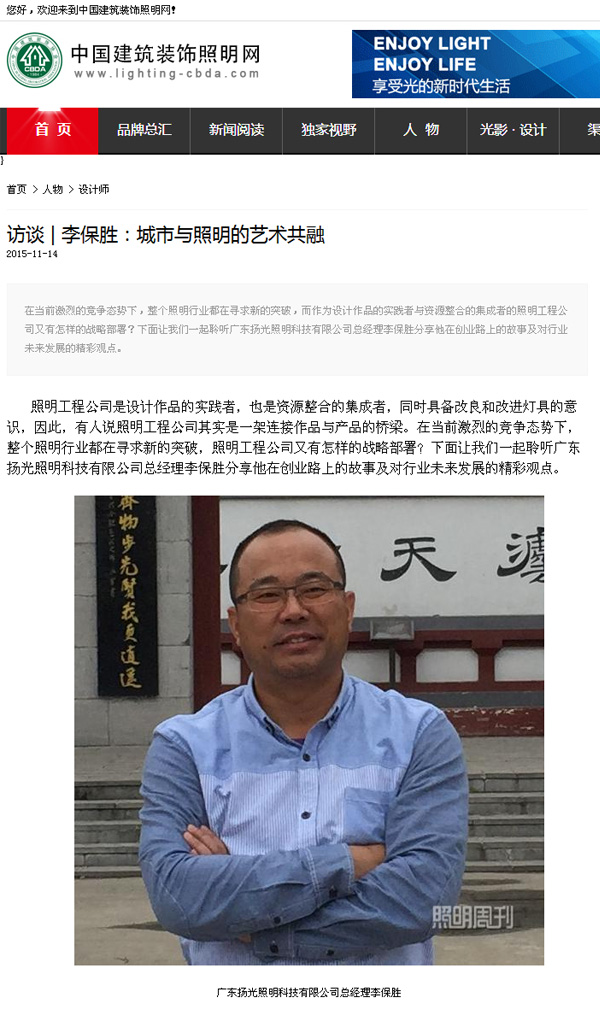 11月14日,《照明周刊》采訪了廣東揚(yáng)光照明科技有限公司總經(jīng)理李保勝。李總對(duì)《照明周刊》記者分享了他創(chuàng)業(yè)路上的故事及公司末來發(fā)展以及行業(yè)的發(fā)展前景。