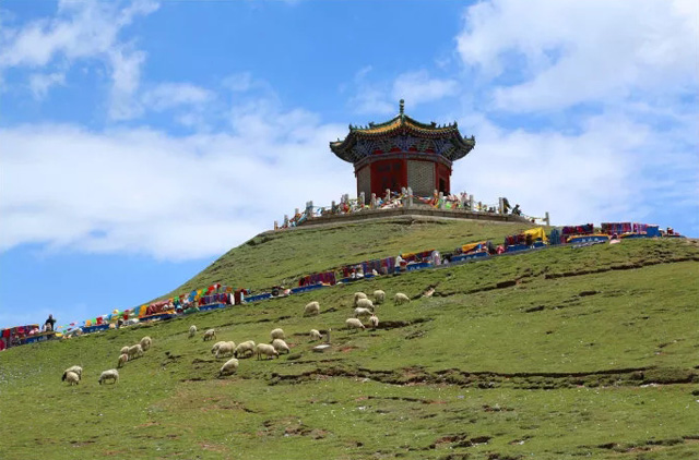 一路前行來到青海農牧區的分界嶺---日月山,日月山是一個分界點,東側阡陌良田,一派塞上江南風光;西側草原遼闊,牛羊成群,是一幅塞外景色。日月山是宋元各代甘青地區通往川藏一帶的必經之路,也是文成公主經日月山赴吐蕃和親形成的唐蕃古道。高原上的日月山,山勢起伏,峰嶺高聳,在若隱若現的紅土層里,仿佛看到了唐朝文成公主進藏和親時,途徑日月山給漢藏人民留下的許多美好的記憶和傳說。