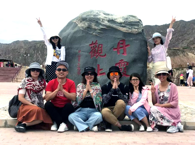 7月29日,穿過一望無際的草原,我們來到了甘肅張掖,那個在一日之中,一年四季,無論晴雨早晚,都有不同的景色七彩丹霞。