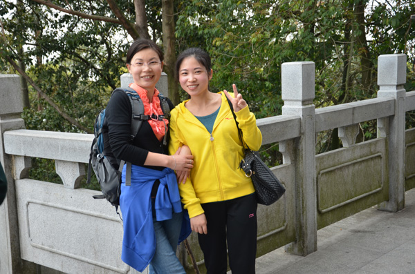 女同胞也不甘示弱,很快到達山頂